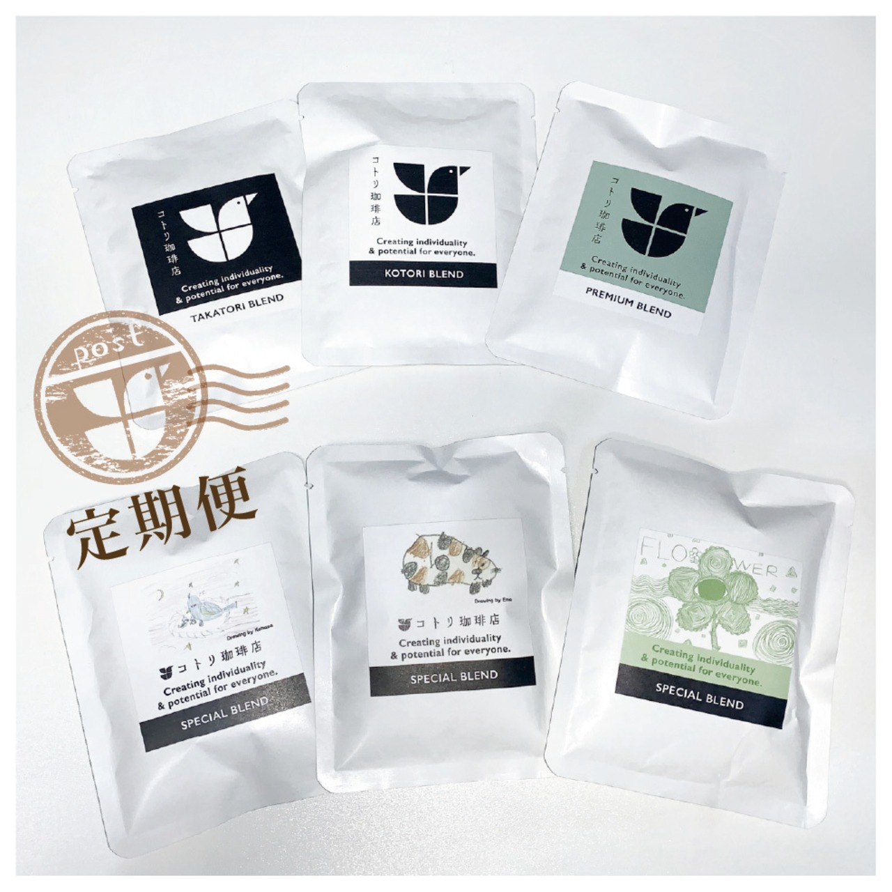 [コトリブレンド』(ロゴ入り白ラベル)×2パック、『高取ブレンド』(ロゴ入り黒ラベル)×2パック、『プレミアムブレンド』(ロゴ入り緑ラベル)×2パック、『スペシャルブレンド』(イラスト入りラベル)×4パック]